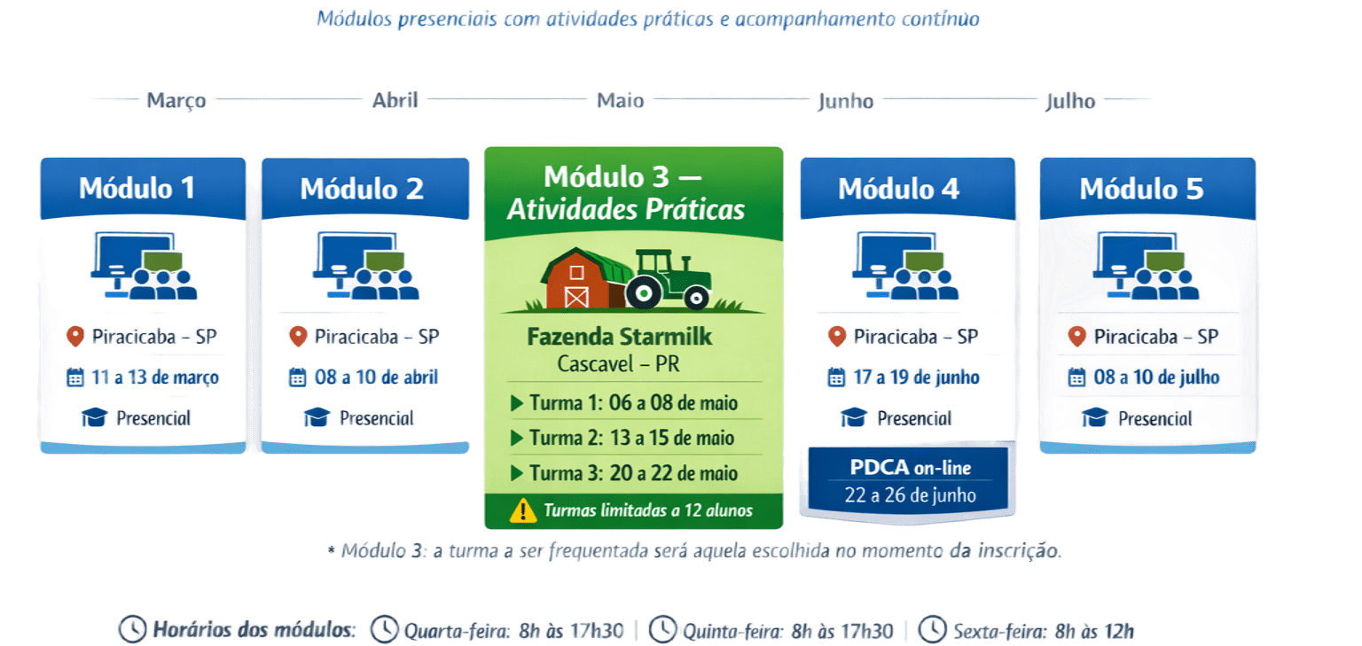 O curso acontecerá na Clínica do Leite, localizada no Parque Tecnológico de Piracicaba, na Av. Cezira Giovanoni Moretti, 600 – Piracicaba/SP.